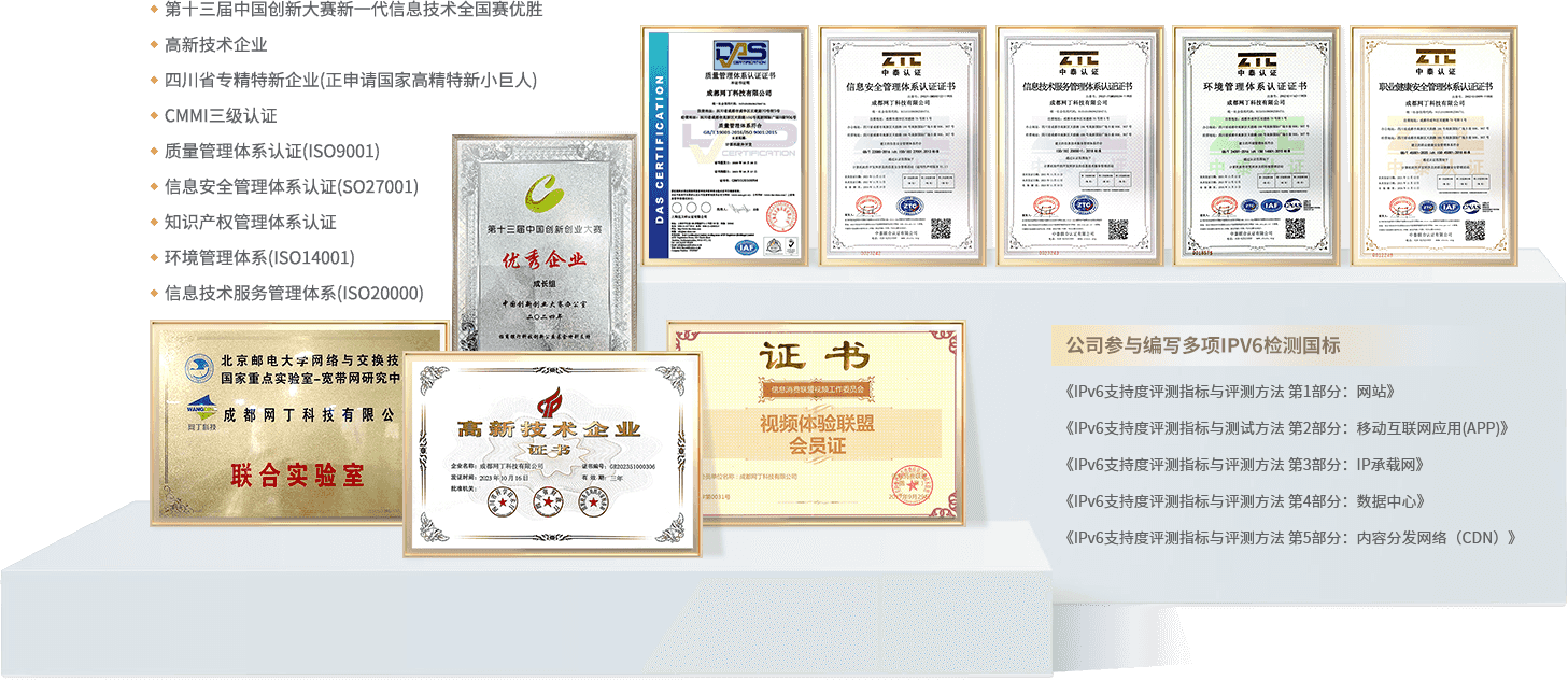 公司是中國(guó)寬帶質(zhì)量聯(lián)盟和國(guó)家視頻體驗(yàn)聯(lián)盟會(huì)員,與北京郵電大學(xué)成立了"國(guó)家網(wǎng)絡(luò)質(zhì)量分析聯(lián)合實(shí)驗(yàn)室",與工信部信通院、三大運(yùn)營(yíng)商研究院、各行業(yè)研究院、騰訊、阿里、華為、中興、等建立長(zhǎng)期合作伙伴關(guān)系。擁有50+項(xiàng)國(guó)家發(fā)明或?qū)嵱眯滦图夹g(shù)專(zhuān)利及軟著,經(jīng)過(guò)多年自主研發(fā),形成了從運(yùn)營(yíng)商到企業(yè)網(wǎng)以及個(gè)人家庭網(wǎng)絡(luò)的智能網(wǎng)絡(luò)運(yùn)維產(chǎn)品系列,為政府、運(yùn)營(yíng)商、金融、能源、交通、制造、互聯(lián)網(wǎng)等數(shù)十個(gè)行業(yè)客戶提供先進(jìn)的下一代網(wǎng)絡(luò)質(zhì)量運(yùn)維精細(xì)化管理解決方案。